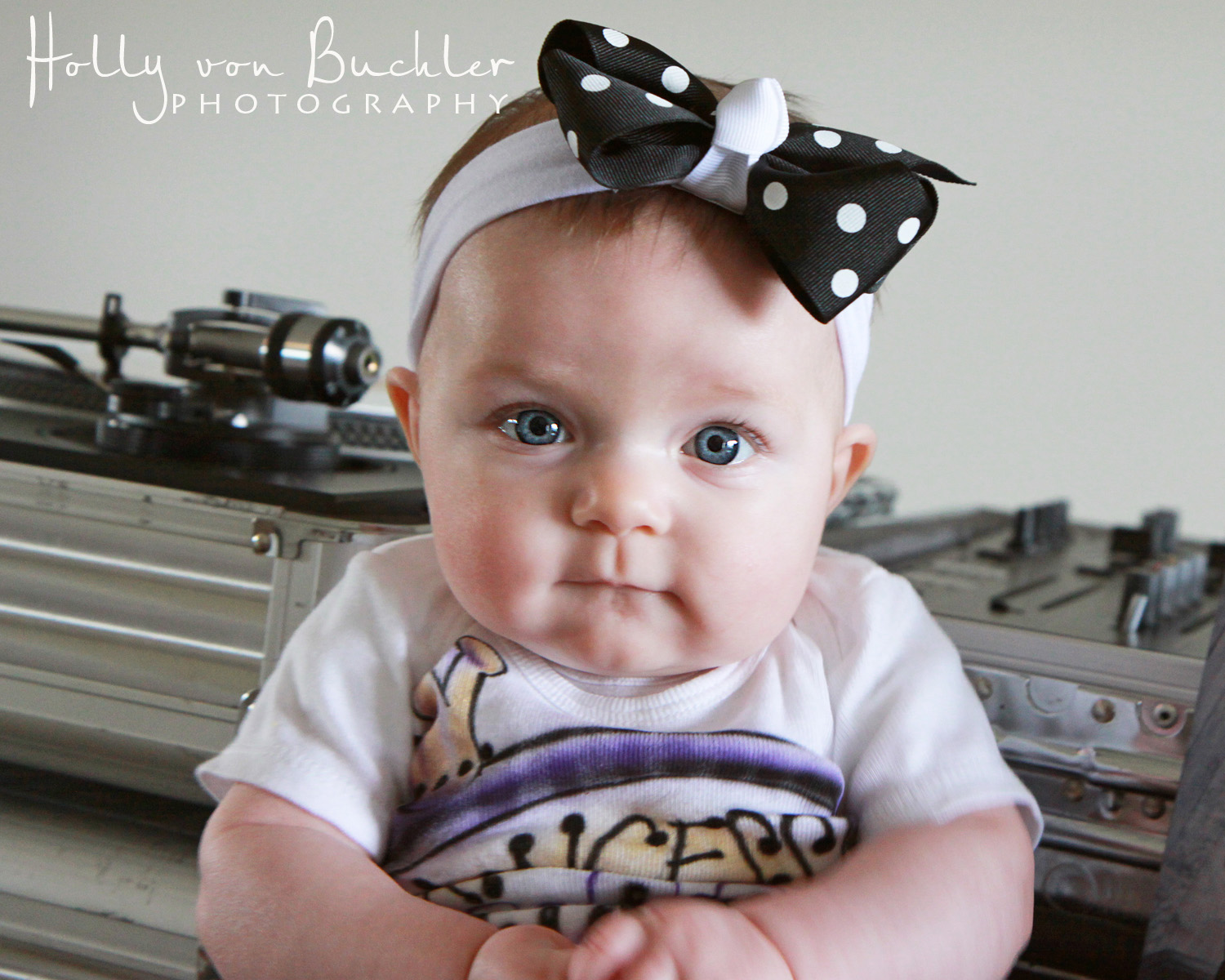 This baby girl is absolutely precious...and her newborn pictures will be part of that big post I'll make later! These pictures are from her 3 month session...and I really don't think she could be any cuter!! Check out her gorgeous blue eyes!!! Her Daddy is a DJ....so we had to take some pictures with his equipment!! Ha!